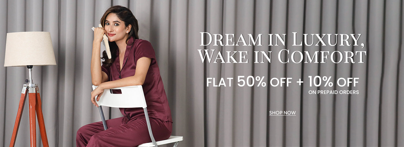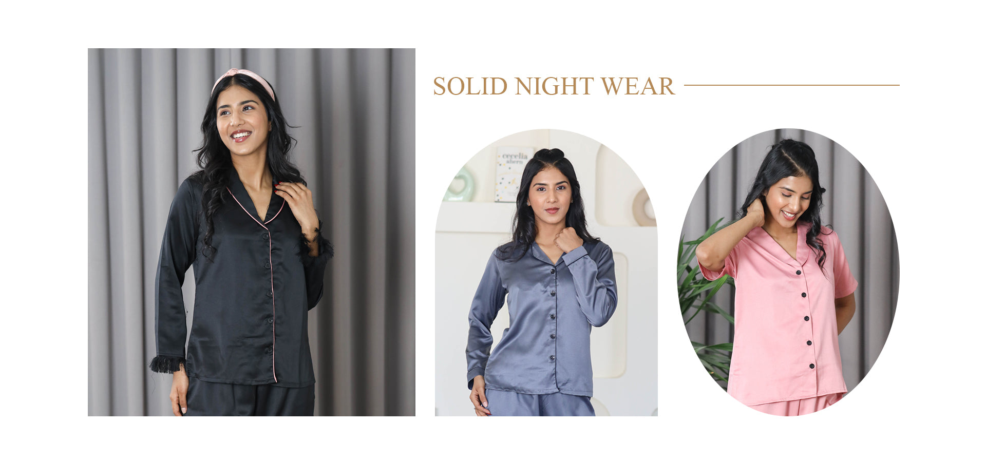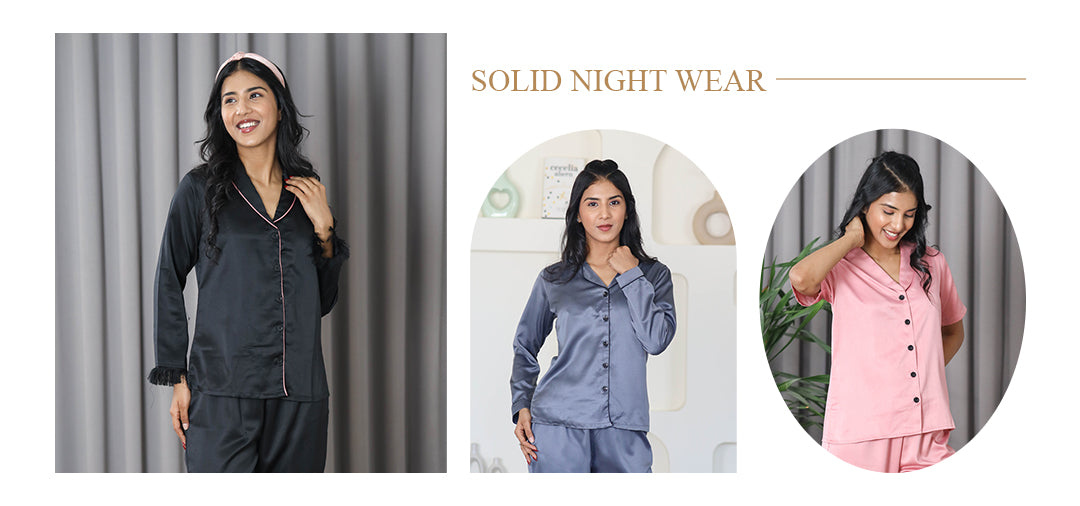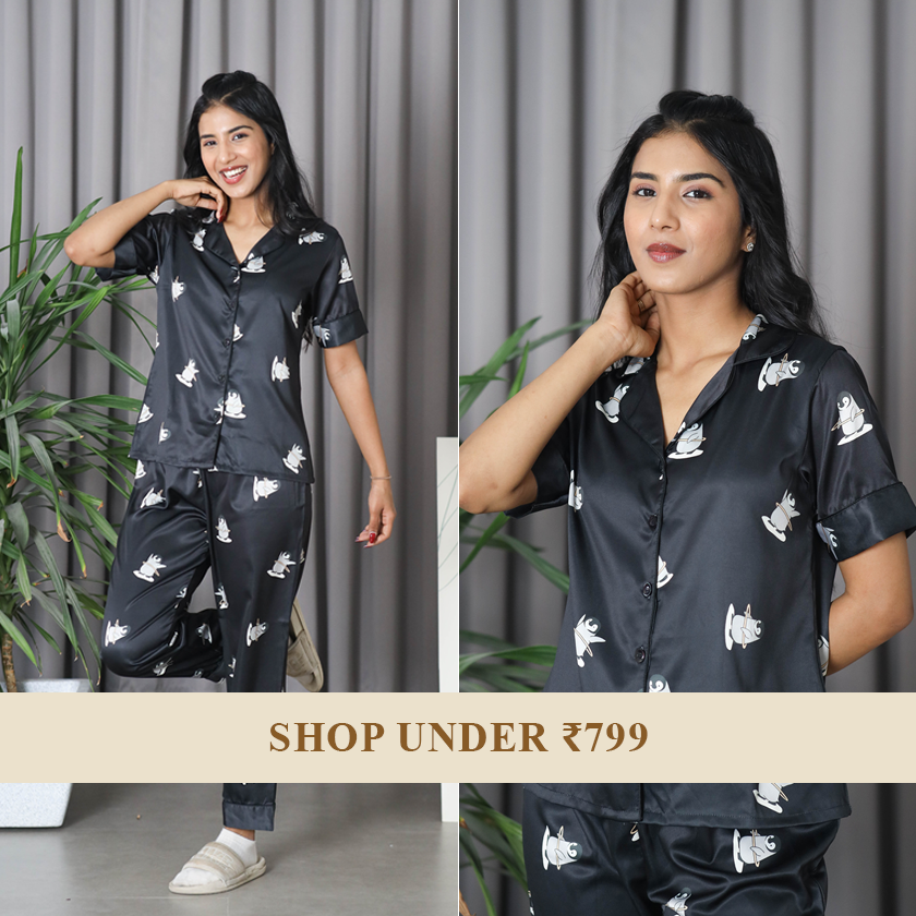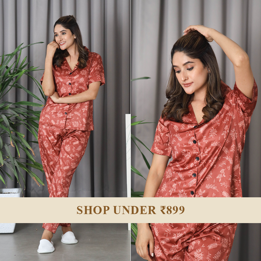 Discover our range of satin night suits that blend softness and style. Perfect for relaxing at home or even gifting, these night suits are lightweight, breathable, and available in a variety of designs to suit your mood.
